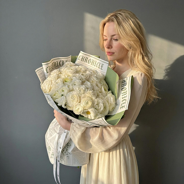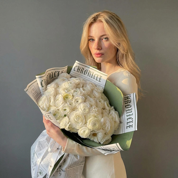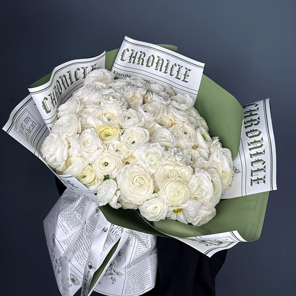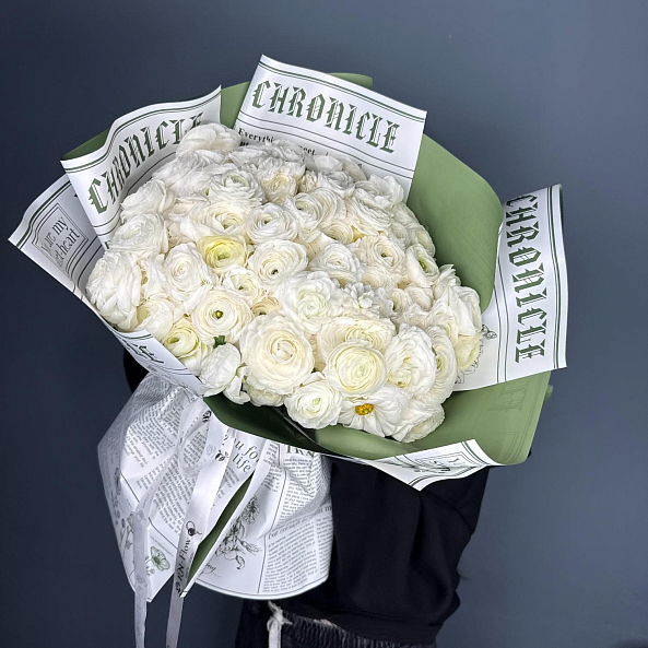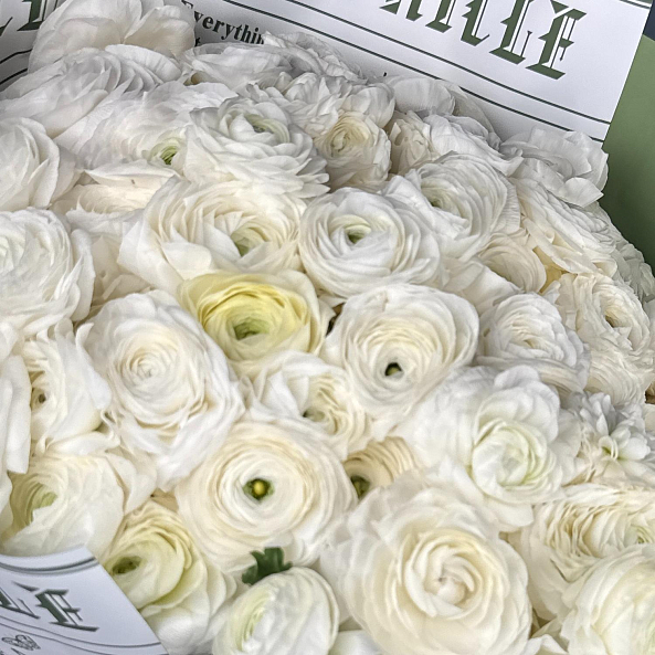 Букет из 101 мини ранункулюса — это воплощение элегантности и изысканности. Миниатюрные ранункулюсы, похожие на маленькие пионы или полураскрытые розы, создают невероятно пышную и романтичную композицию. Ранункулюс — цветок, который поражает своей необычной формой бутонов и олицетворяет элегантность . Многослойные нежные лепестки с гофрированной текстурой придают букету особый шарм и объем. Эти цветы символизируют восхищение, привлекательность и очарование.
