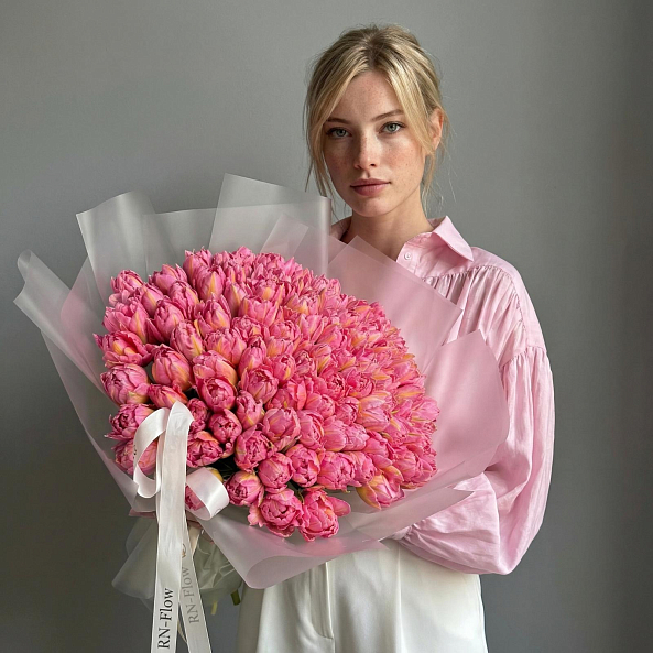 Тюльпан "Барби" (Розовый Пион) — 101 штука