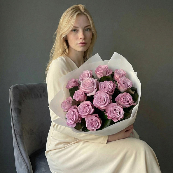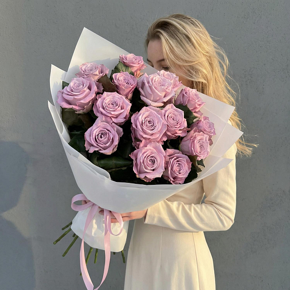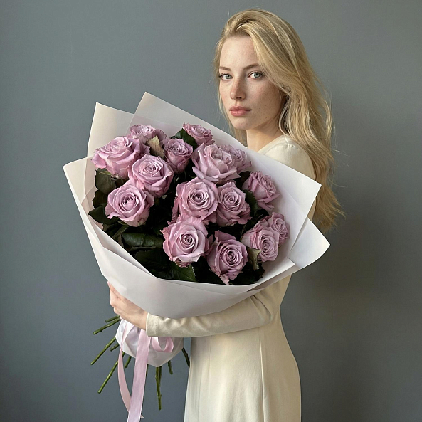 Букет «Сиреневая мечта» — 15 роз «Маритим», 70 см