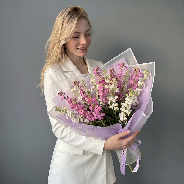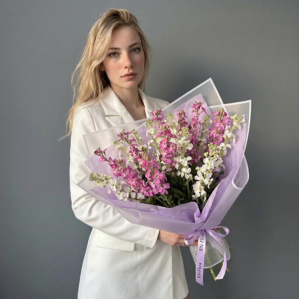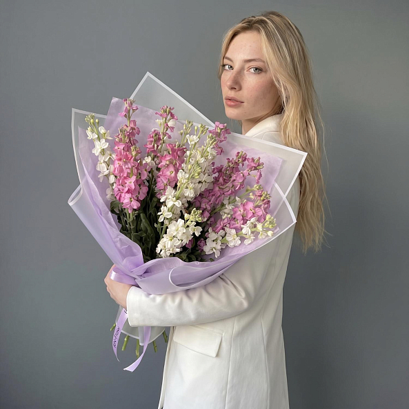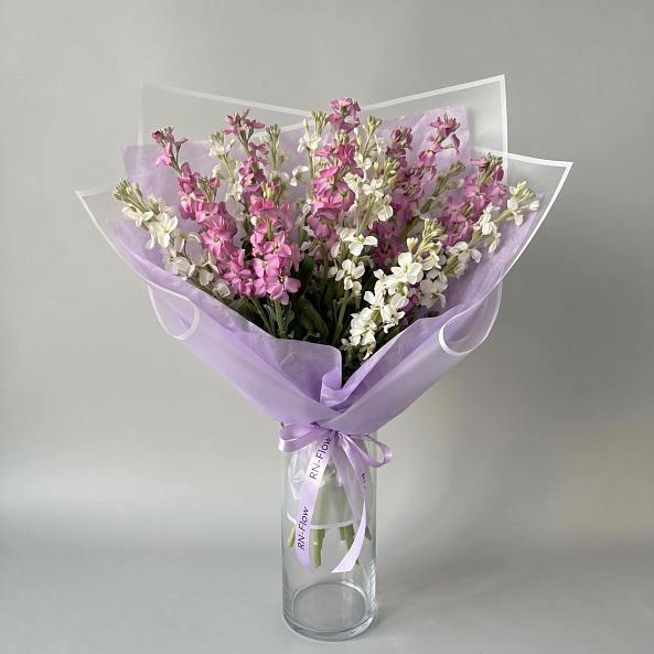 Букет «Розово-Белый Вальс: 21 Стебель Маттиолы «Пустошка» в Миксе (Белая, Розовая)»