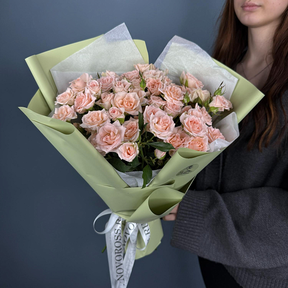 Нежно-кремовые бутоны с лёгким персиковым оттенком раскрывают свою прелесть постепенно, радуя свежестью и объёмом. Идеальный подарок на любой праздник.