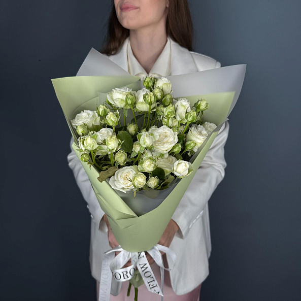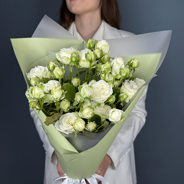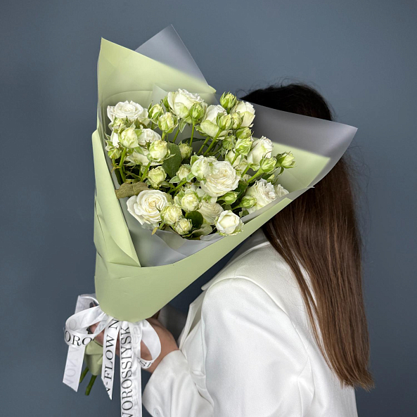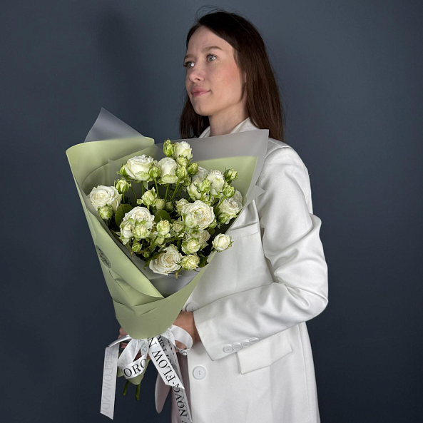 Три нежных, пышных ветки с чисто-белыми лепестками и зелёным отливом — как первые цветы весны. Идеальны для минималистичного подарка: свадьбы, дня рождения или просто чтобы сказать «я рядом». Чистота, спокойствие и изысканная простота в одном букете.