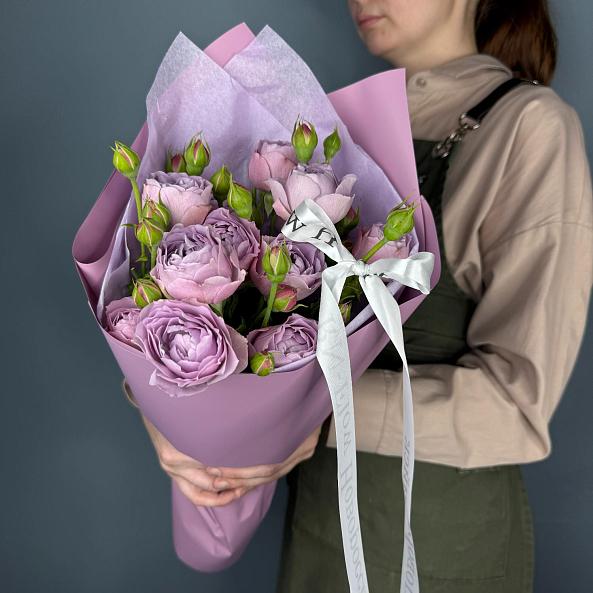 Нежно-лиловые, пышные, словно из атласа — эти розы дарят спокойствие, уют и изысканность. Идеальны для создания нежных, воздушных композиций.