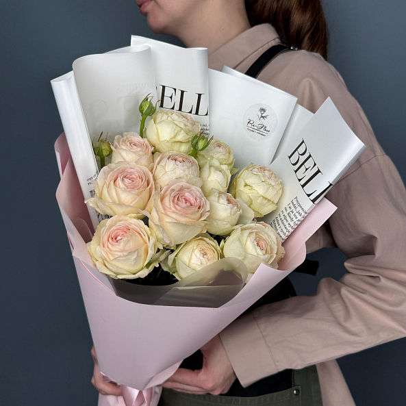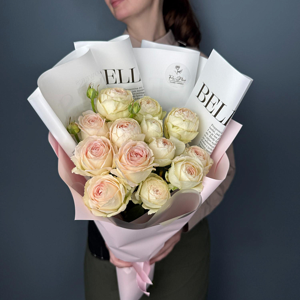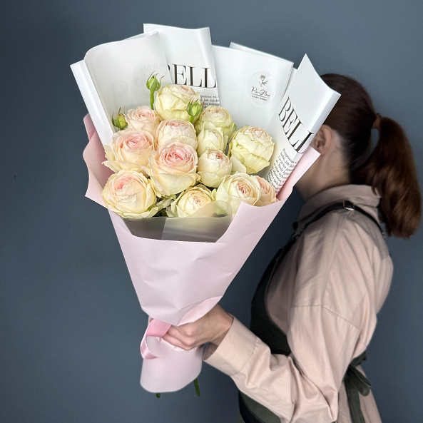 Минималистичный, но очень нежный букет из трёх кустовых пионовидных роз с кремово-розовым оттенком. Идеален для первого признания, дружеского подарка или просто чтобы сказать: «Ты — моя сладкая нежность». Лёгкий, воздушный, с ноткой романтики — как первый поцелуй на закате.