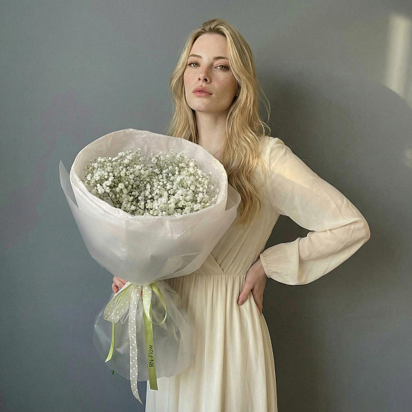 Букет из 5 белых гипсофил: чистота и нежность в каждом вздохе