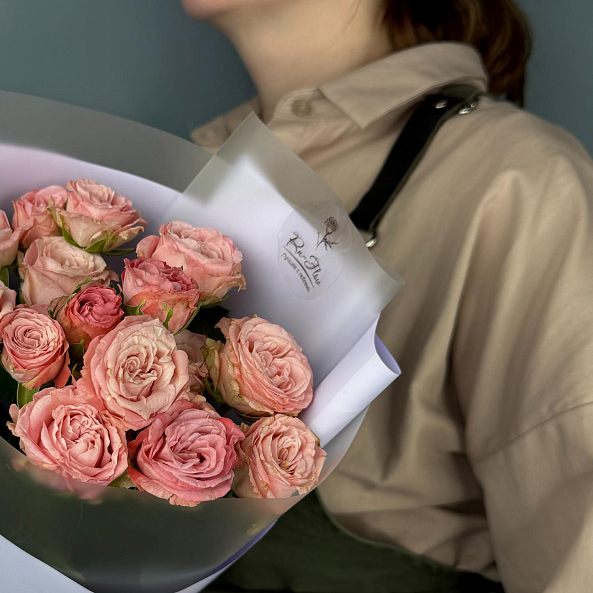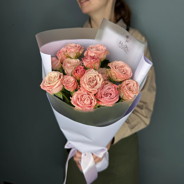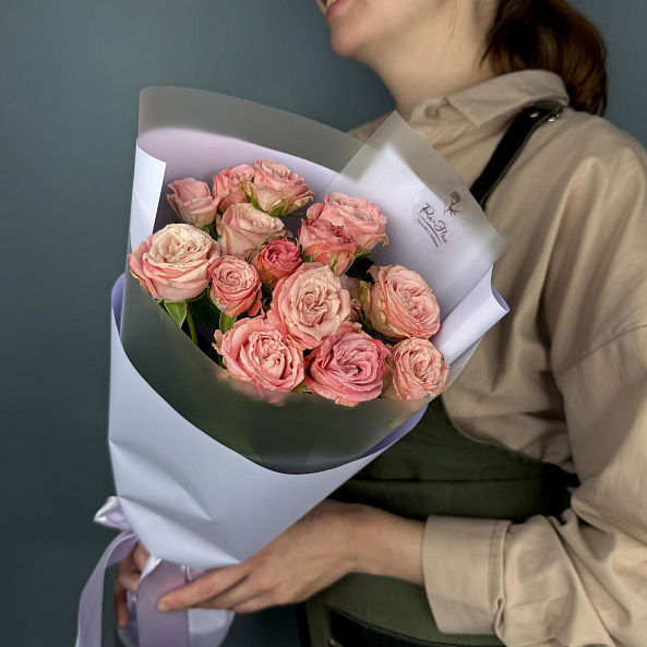 Букет из 5 кустовых пионовидных роз «Мадам Бомбастик» высотой 50 см — нежный, пышный и романтичный. Каждая роза напоминает распустившийся пион с мягким розовым оттенком и бархатистыми лепестками. Лёгкие веточки ковыля добавляют композиции воздушности и природной элегантности. Идеально подойдёт для Дня рождения, Дня святого Валентина, признания в любви или как знак внимания. Упакован в стильную бумагу с лентой — готовый подарок, который тронёт сердце своей нежностью и изысканностью.