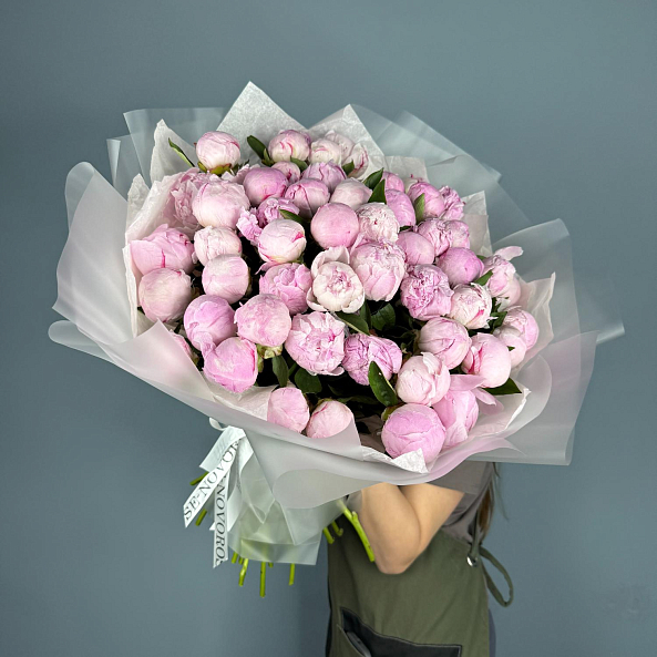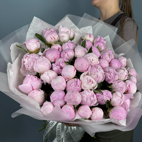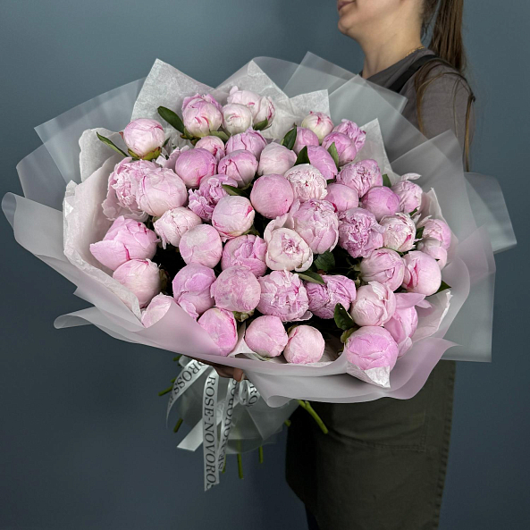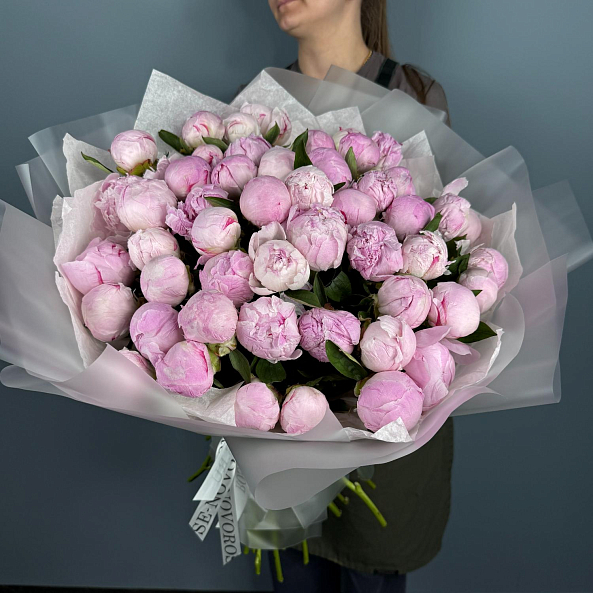 51 пион "Сара Бернар" — это яркий и трогательный букет, наполненный нежностью и изяществом. Цветы обладают пышными, почти как розы, бутонами насыщенного розового оттенка, что создаёт эффект необыкновенной романтики и тепла. Такой букет станет превосходным подарком на день рождения, годовщину, юбилей или как выражение любви и восхищения.