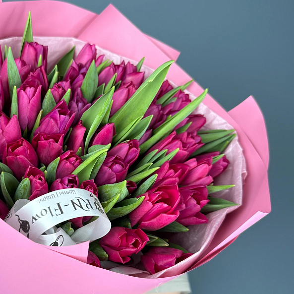 Тюльпан "Пинк Ардор" (Темно-розовый Гладкий) — 51 штука