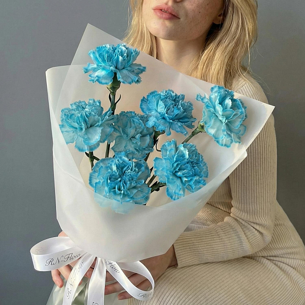 Букет голубых гвоздик: смелая нежность в каждом лепестке!