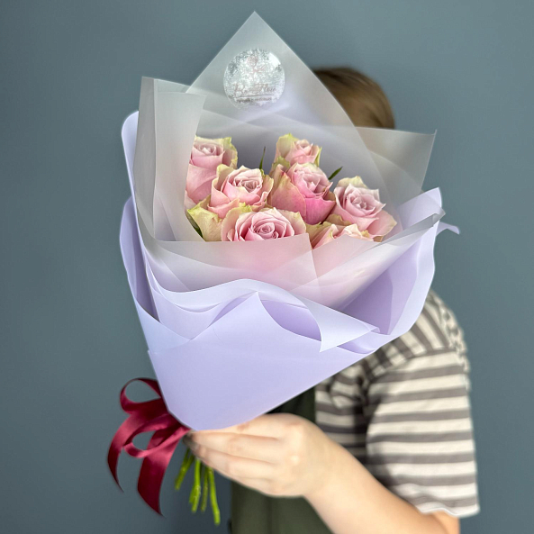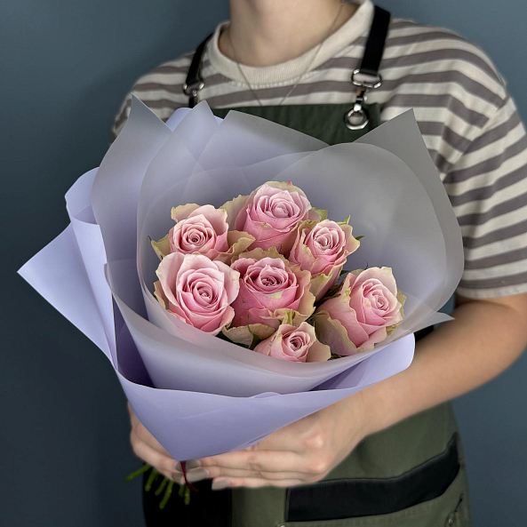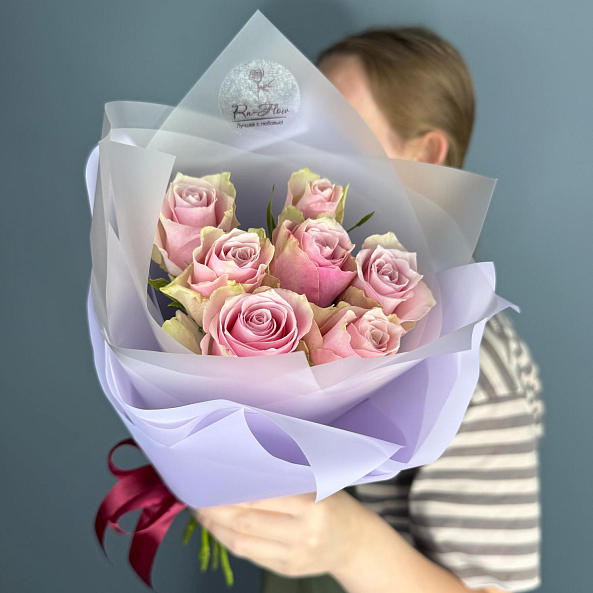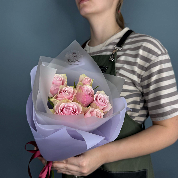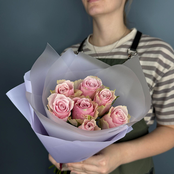 7 роз "Пинк Атена" (Кения) 40 см — это свежая, нежная и изысканная композиция с пастельными розовыми оттенками, подчеркивающая изысканность и романтику. Идеальный букет для поздравлений, романтических моментов или как трогательное выражение внимания и заботы.