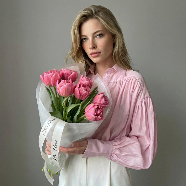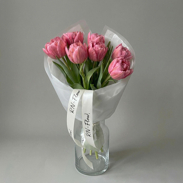 Букет "Барби": 7 Розовых Пионовидных Тюльпанов»