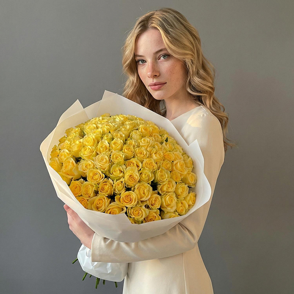 Букет «Солнечный свет» — 101 Желтая Роза «Пени Лейн»