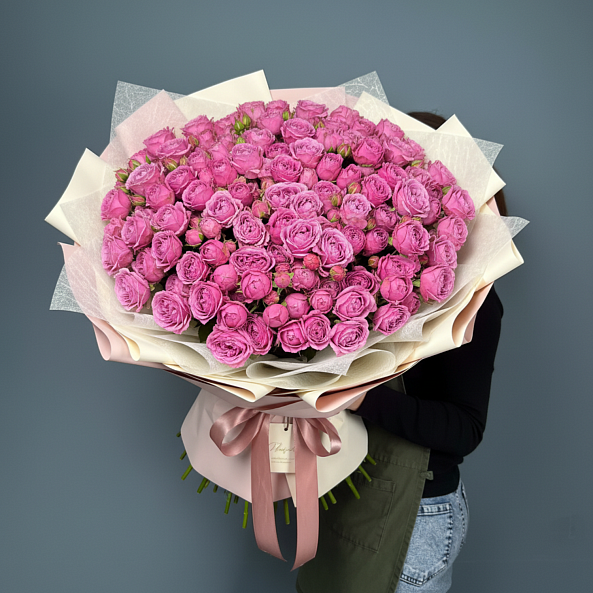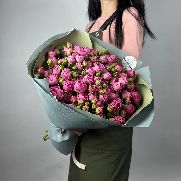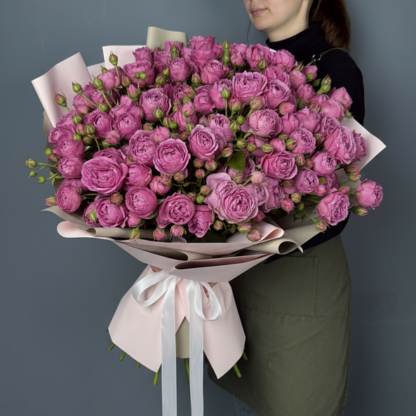 Нежный, утончённый букет из 21 пышной кустовой розы насыщенного фиолетово-розового оттенка. Идеален для первого признания, дружеского подарка, для любимой или на день рождения или просто чтобы сказать: «Ты — особенная». Лёгкий, романтичный, с ноткой загадочности — как вечерний закат.