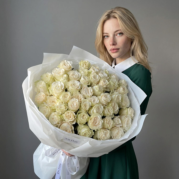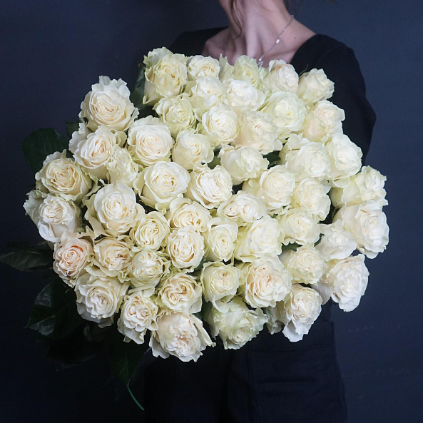 Букет «Белоснежная Симфония: 51 Премиум Роза «Мондиаль» Эквадор 70 см»