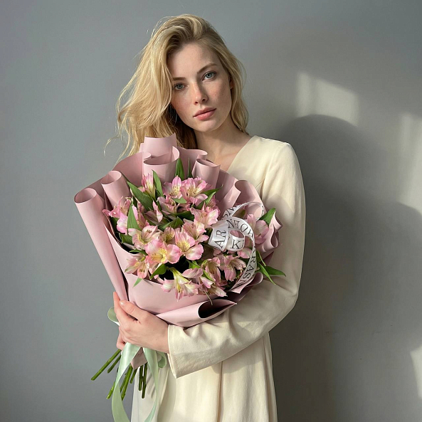 - 7 розовых альстромерий: символ уважения и восхищения.