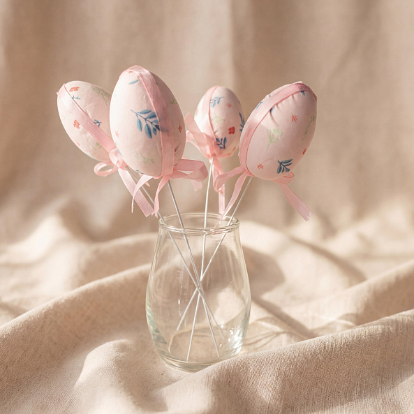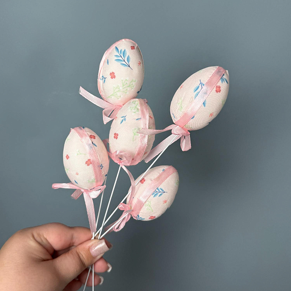 Этот очаровательный набор — настоящий символ весеннего праздника, где 5 декоративных яиц в розовых пастельных тонах с нежным цветочным принтом создают атмосферу тепла и волшебства. Каждое яйцо, аккуратно закрепленное на палочке и украшенное розовой лентой с бантиком, словно застывший волшебный момент из детской сказки. Набор легко превращается в уникальный декор для интерьера, стола или фотозоны, добавляя в пространство нотку праздничной радости.