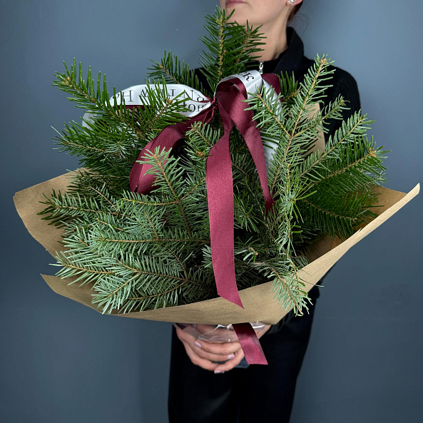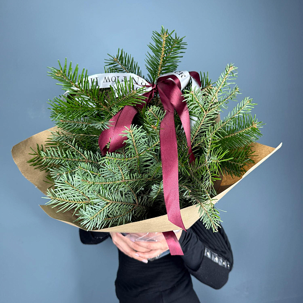 Пышный букет из свежей хвои — это не просто украшение, а целая атмосфера зимнего уюта. Идеален для дома, офиса или в качестве подарка.