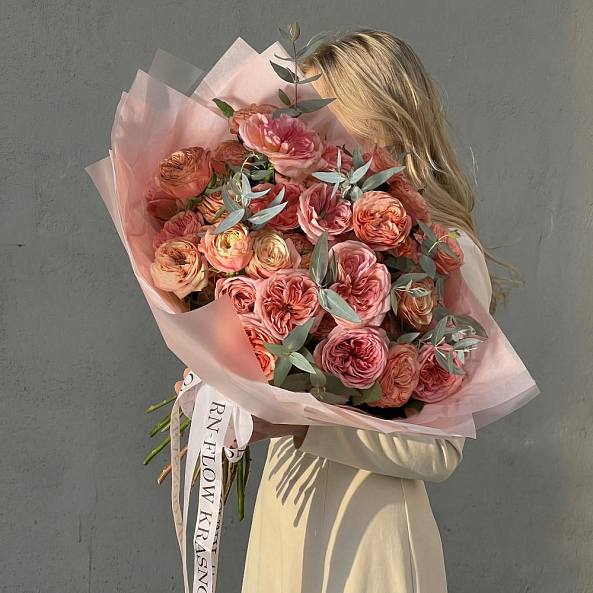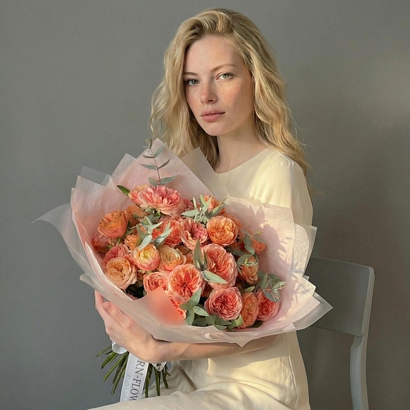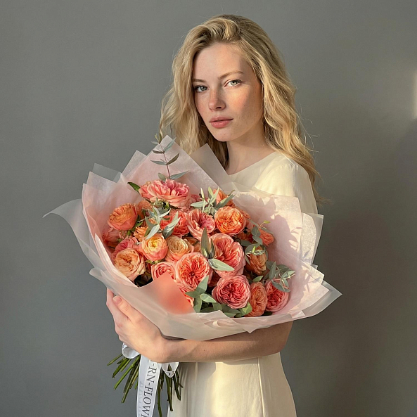 Ярко-розовые розы Лондон ай и Персиковые розы Леди априкот — это не просто букет, а целая история. Идеален для тех, кто хочет подарить не просто цветы, а целое настроение.