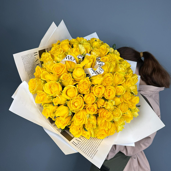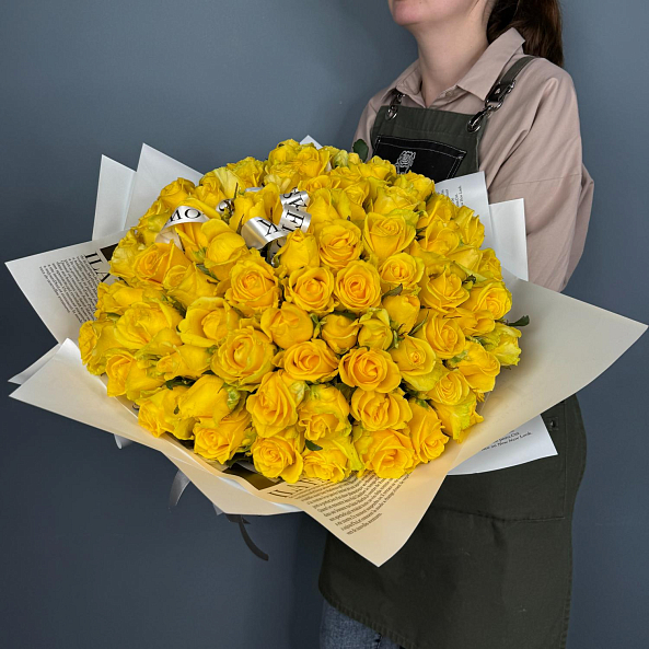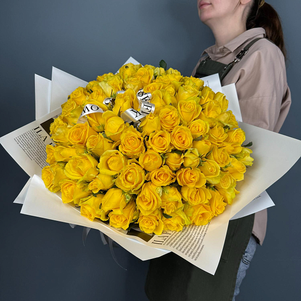 Роза Желтая Пени Лейн 40 см — 97 штук