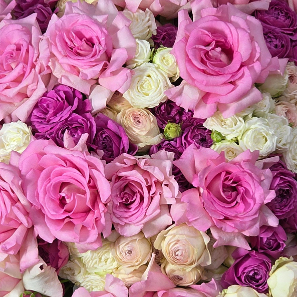 Букет цветов. Французская Розовая Роза, Кустовая Пионовидная Роза.