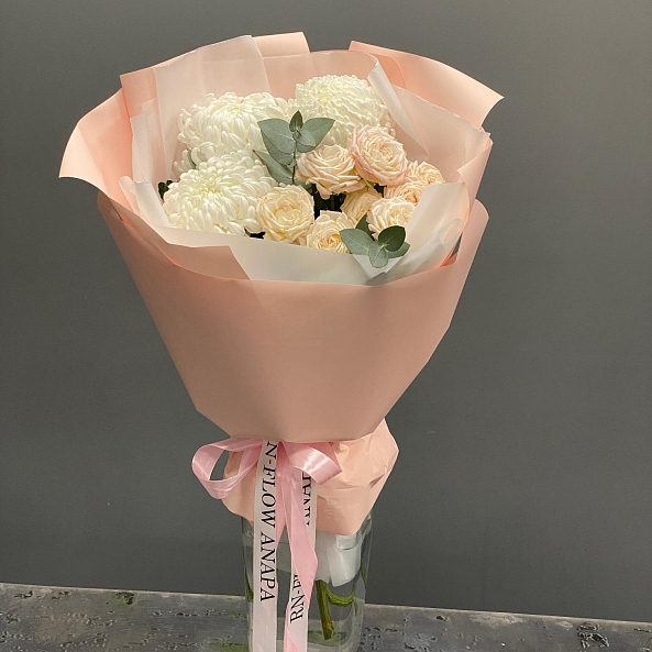 Букет «Нежный уют» — Хризантемы + Розы Пионовидные