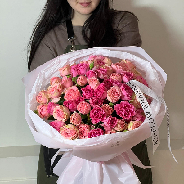 Букет Цветов. Кустовые Пионовидные Розы "Пинк Дедикейшн", "Спешл Дайменшн" 21 шт.