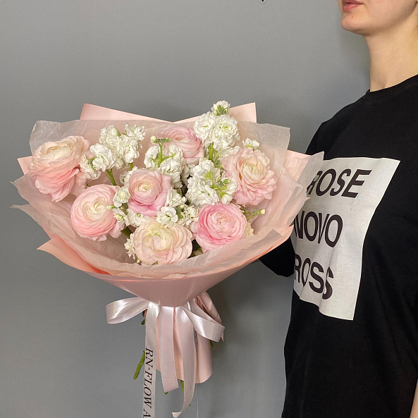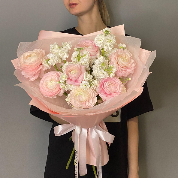 Букет цветов. ранункулюс (Лютик), Маттиола Белая.