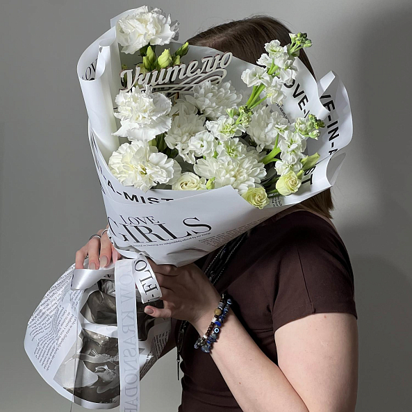 Букет «Учителю» — элегантный и нежный подарок с благодарностью. Сочетание белых гвоздик, эустомы и кремовых роз в стильной упаковке с персональной табличкой «Учителю» — идеально подойдёт для Дня учителя, последнего звонка или просто как знак уважения. Чисто, изысканно, со вкусом.