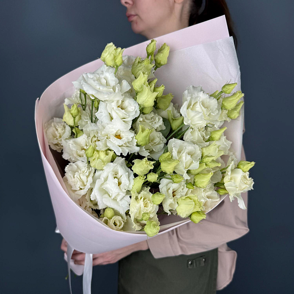 Символ чистоты, спокойствия и нежности. Белая махровая эустома — будто капелька утреннего тумана, застывшая в цветке. Её мягкий аромат и изысканная форма создадут атмосферу уюта и гармонии в любом интерьере.