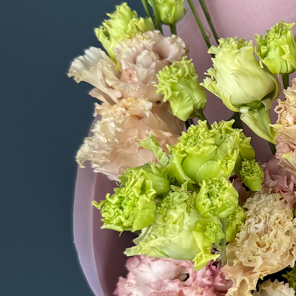 Теплое солнце в каждом бутоне. Персиковая махровая эустома — это нежность, уют и женственность, воплощённые в цветке. Её мягкие лепестки, словно вырезанные из атласа, добавят вашему букету романтики и свежести.