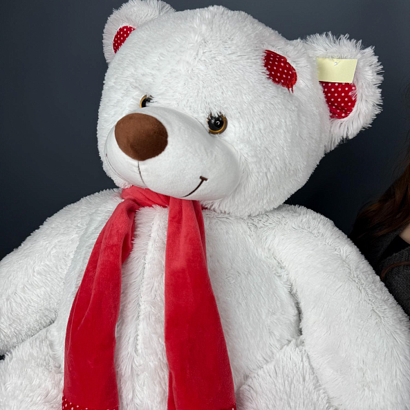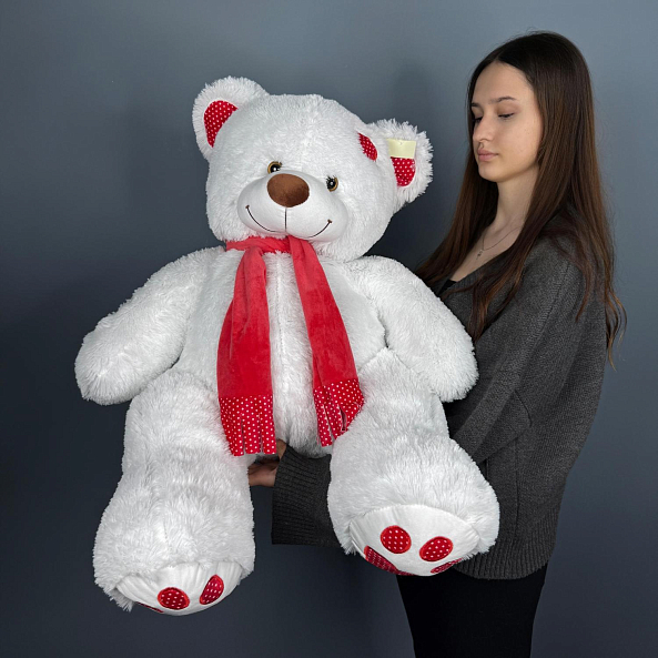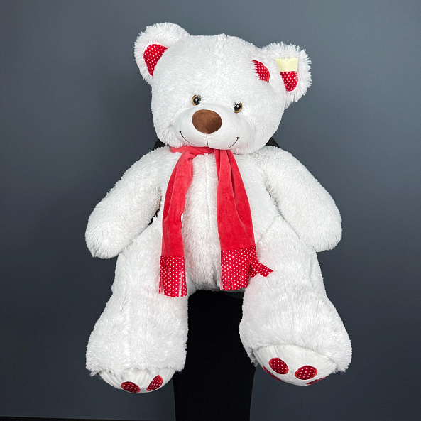 Мишка Тони с шарфом белый 110 см