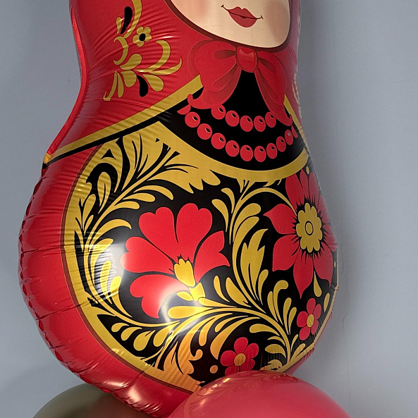 Шар фольгированный, Матрешка красная золотая роспись, 80 см — 1 штука