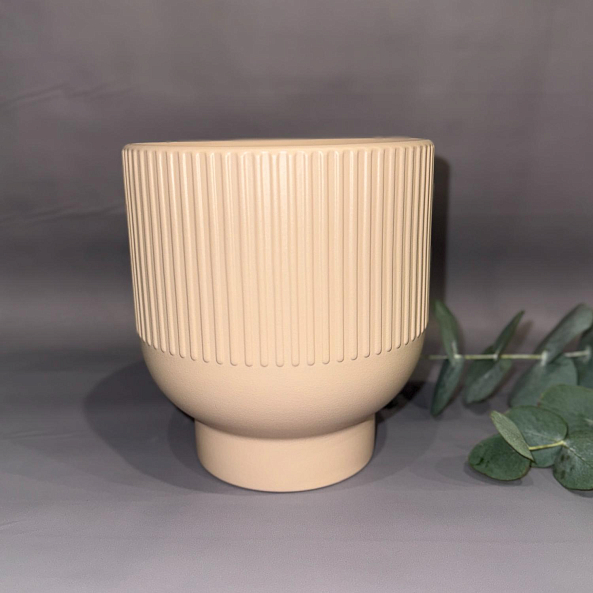 Керамическая ваза **кремового цвета** с вертикальной рельефной текстурой — идеальный выбор для современного интерьера.