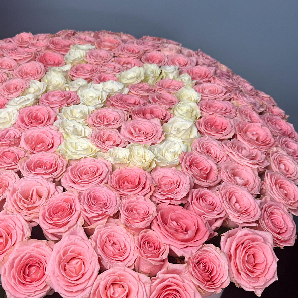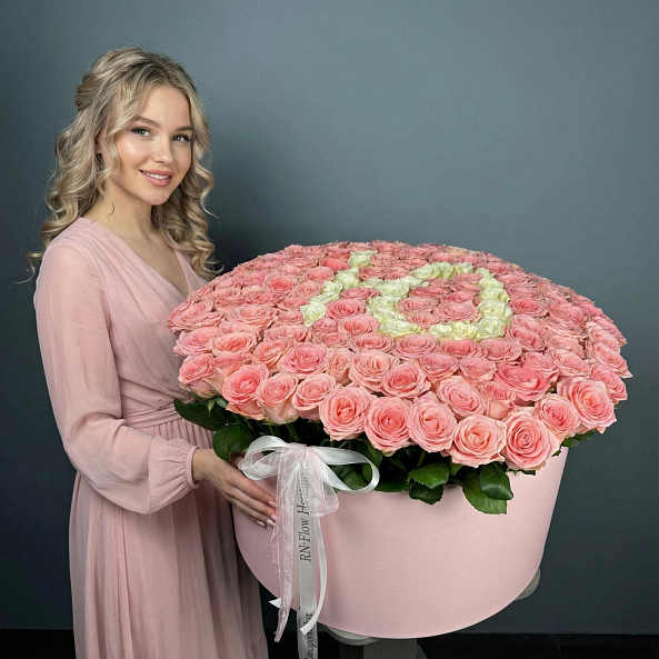 Пышный, объёмный, с контрастом цветов — он запомнится надолго. Буква может быть любая, цвет роз так же может меняться от наличия .
