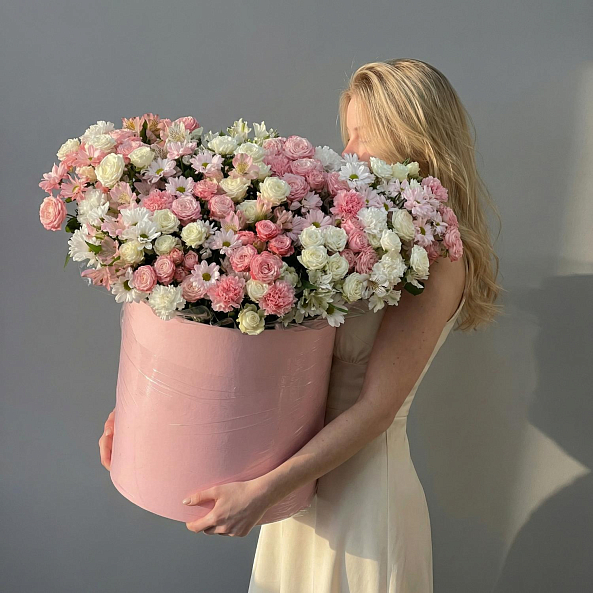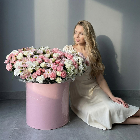 Подарите себе или близкому человеку настоящий взрыв нежности и радости с этой грандиозной коробкой цветов! Наша XXL-композиция — это не просто букет, а целый цветущий сад, созданный для того, чтобы поразить своей красотой и наполнить пространство ароматом свежести и любви.
