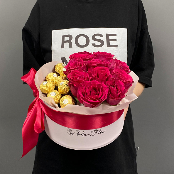 Коробка «Розовый восторг» — Розы + Ferrero Rocher