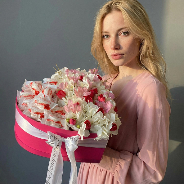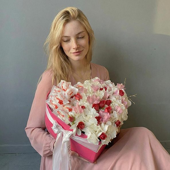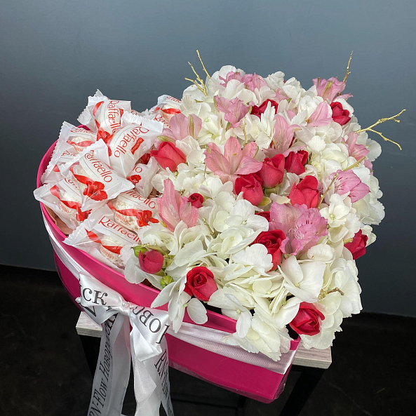 Коробка «Сердце»: роскошный подарок, где цветы и сладости сливаются в одну симфонию любви!