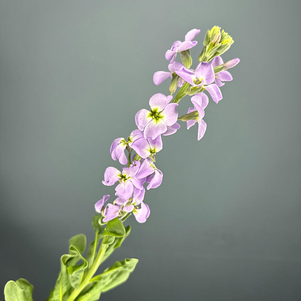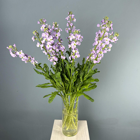 Этот изысканный букет — настоящая симфония умиротворения и гармонии, где маттиола «Пустошка Лаванда» в нежно-лавандовом оттенке создает компактную, ароматную композицию, словно застывший момент из самого спокойного уголка сада.