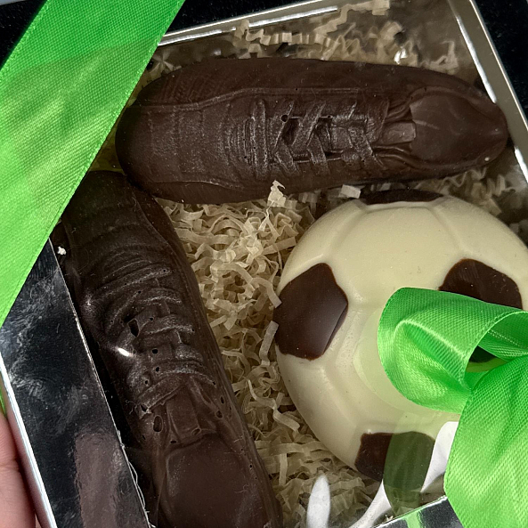 Шоколадные футбольные бутсы с детализированными шнурками и текстурой — настоящий шедевр ручной работы.