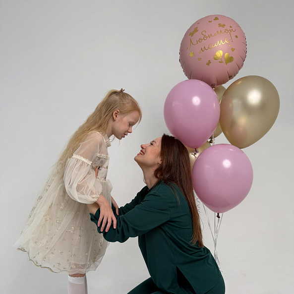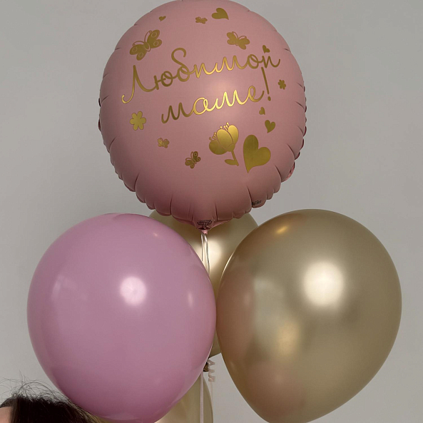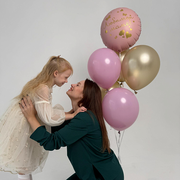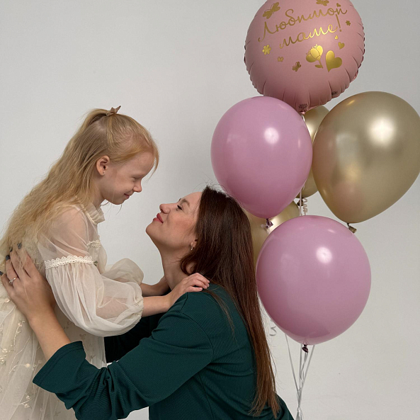 Романтичный набор шаров в нежных розовых и золотых тонах — идеальный подарок для любимой мамы. В центре композиции — большой шар с надписью «Любимой маме!» и изящными золотыми деталями. Нежность, тепло и безусловная любовь в одном букете.