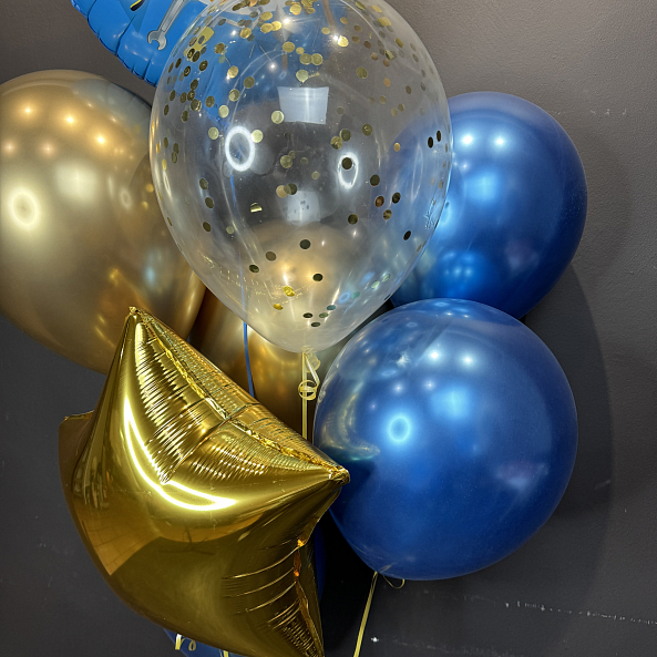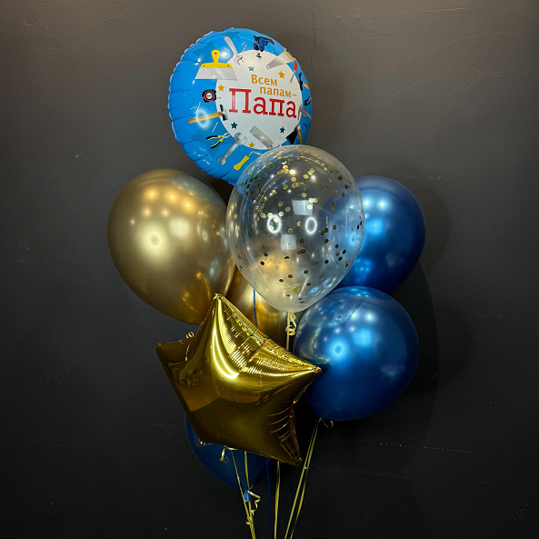 Стильный и праздничный набор для настоящего героя — с фольгированным шаром в тематике «мастер на все руки», золотой звездой, блестящими синими и прозрачными шарами с конфетти. Идеальный подарок на День отца, день рождения или просто для того, чтобы сказать: «Ты лучший!»
