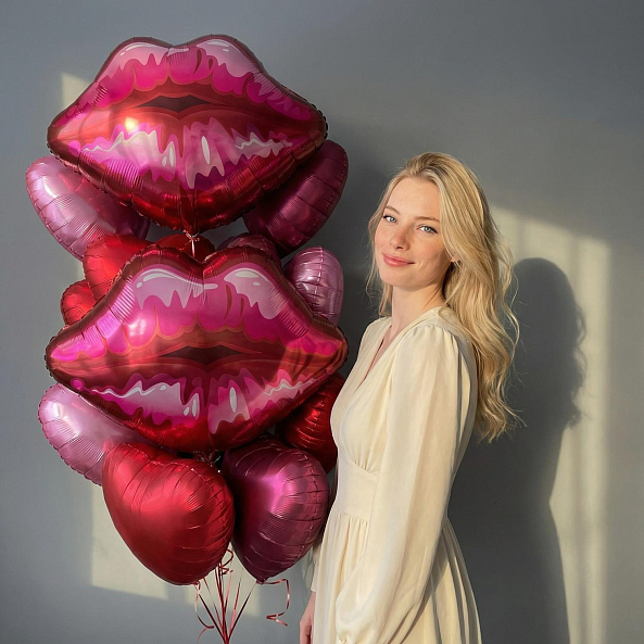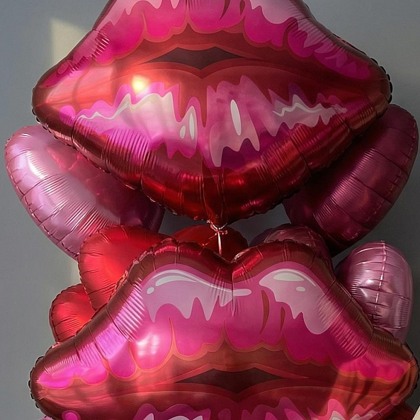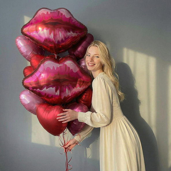 Этот набор — не просто украшение, а визуальный поцелуй в воздухе. Яркие фольгированные губы и блестящие сердца создают атмосферу страсти, нежности и лёгкой дерзости — идеально для тех, кто говорит о любви без слов.