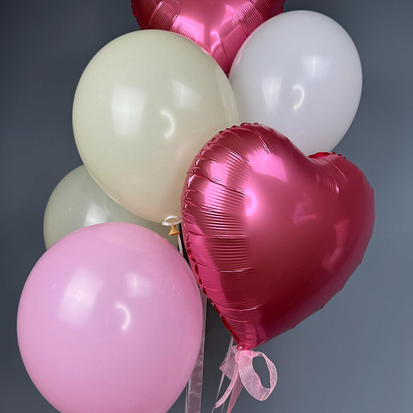 Набор шаров с романтическим настроением: яркие розовые сердечки, пастельные воздушные шары и эффектный фольгированный шар в форме губ. Идеально подойдёт для Дня святого Валентина, признания в любви или романтического вечера. Надут гелием — легко парит, создавая праздничную атмосферу.