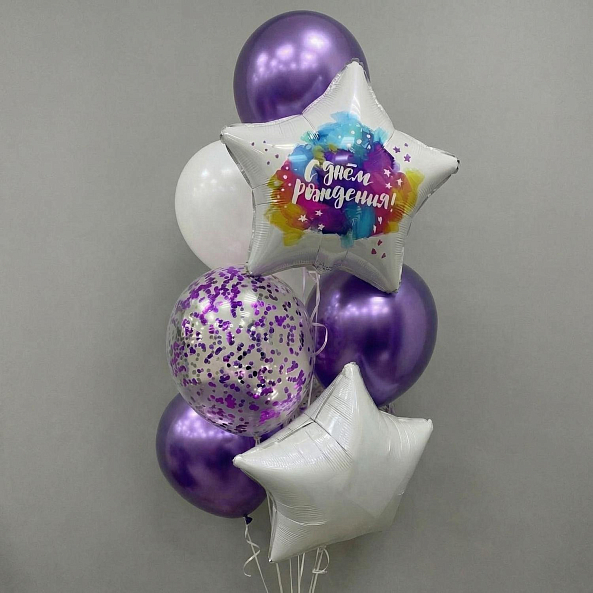 Набор Шаров «Фиолетовая Звезда: Праздник С Днём Рождения!»