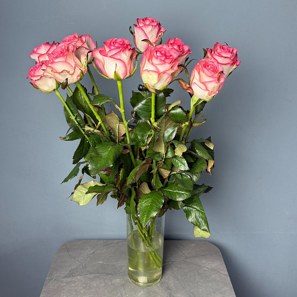 Охапка Бело-Розовой Розы "Джумилия" 70 см - 10шт.