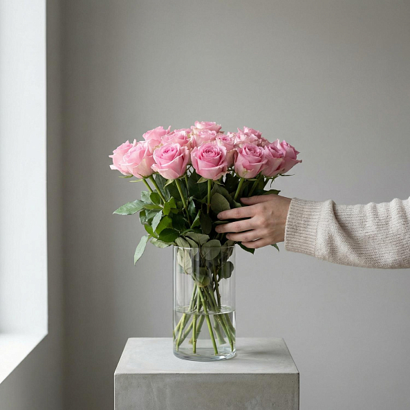 Без упаковки, без лент и готовых композиций. Просто много свежих цветов, собранных вместе. Вы сами создаёте из них настроение: подрезаете, распределяете по вазам, собираете свою композицию или оставляете лёгкий творческий беспорядок.