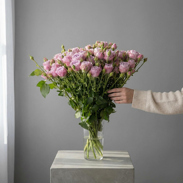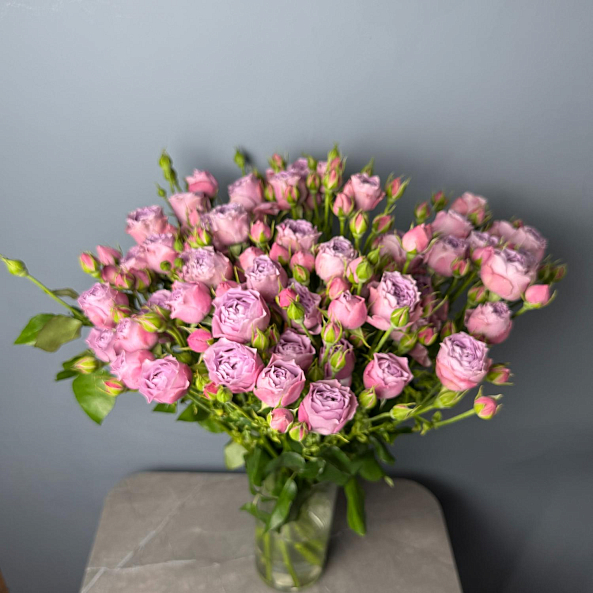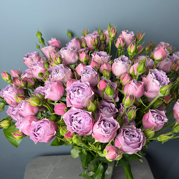 Охапка Кустовых Пионовидных Роз "Лавендер Баблс" 60 см - 10шт.