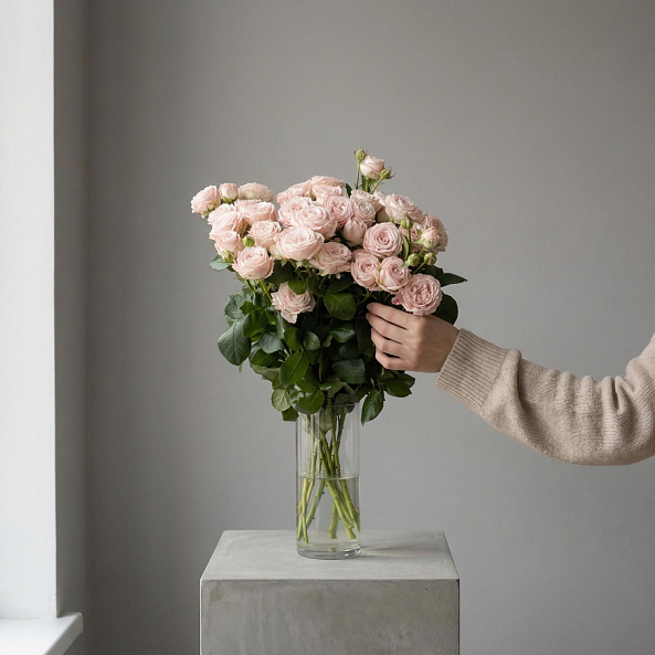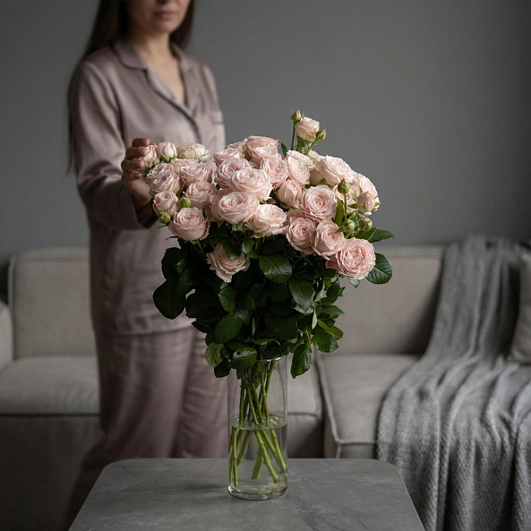 Охапка Кустовых Пионовидных Роз "Мисс Пиони" 60 см - 10шт.