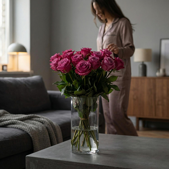 Охапка пурпурной Розы "Дип Перпл" 20 шт, 40 см.