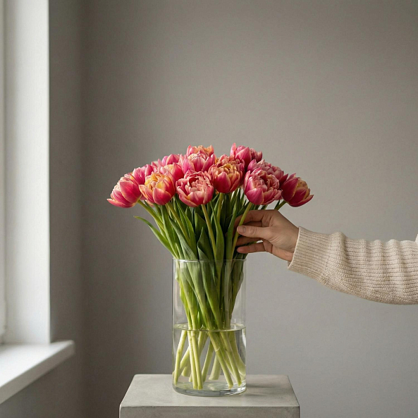 Охапка Розово-Желтых Пионовидных Тюльпанов "Колумбус" 20 шт.